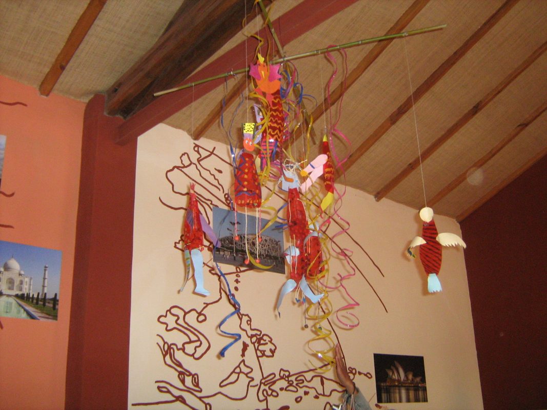 Il arrive souvent que les enfants oublient de fermer le robinet après s’être lavé les mains. Le temps qu’un adulte s’en rende compte, de l’eau va couler. Pour éviter cela, le stratagème du village est la mise en place d’un perchoir de bouteille d’eau sur une petite plantation. L’enfant n’aura besoin de personne pour tenir la bouteille puisqu’elle est perchée, et si jamais il oublie de la remettre en place, l’eau qui coulera va nourrir la plantation en dessous. Voilà, c’est écolo !